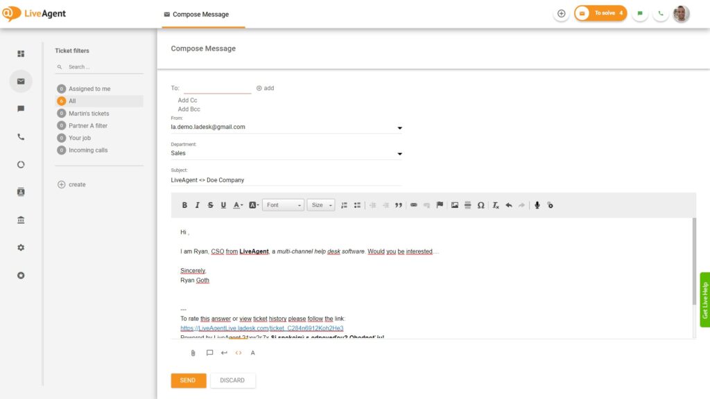 Scopri come gli allegati negli articoli di LiveAgent ottimizzano la gestione dei file come foto, documenti, e video. Condividi facilmente tramite drag & drop nei ticket, chat e articoli della base di conoscenza. Prova gratuita disponibile senza vincoli. Migliora la comunicazione con i clienti e riduci le richieste superflue grazie a LiveAgent.