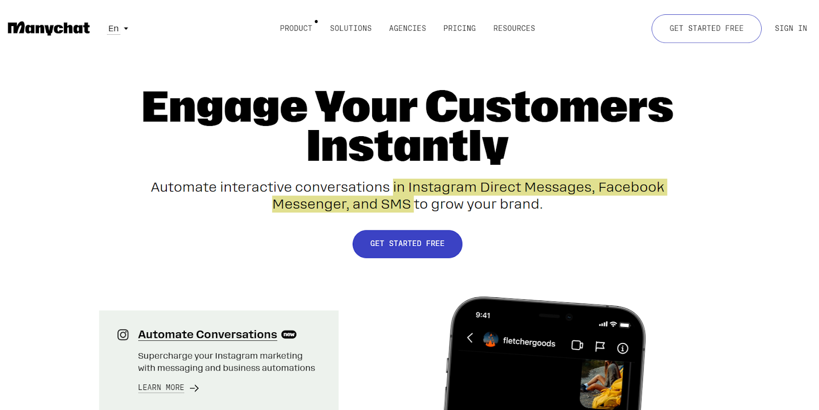 Manychat è una piattaforma di chatbot building progettata per creare chatbot interattivi nei messaggi diretti di Instagram, Facebook Messenger e SMS. Offre un’interfaccia visiva drag-and-drop che consente agli utenti di progettare e personalizzare i propri chatbot senza dover scrivere alcun codice. La piattaforma offre anche una serie di funzionalità interessanti. Ad esempio, modelli precostituiti, segmentazione del pubblico, broadcasting e analytics.