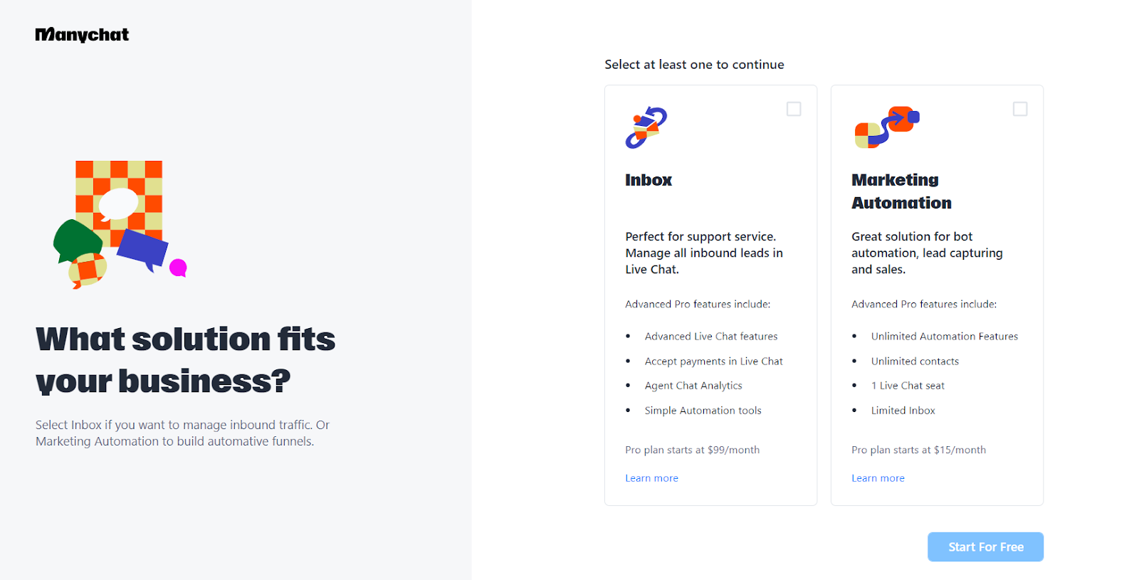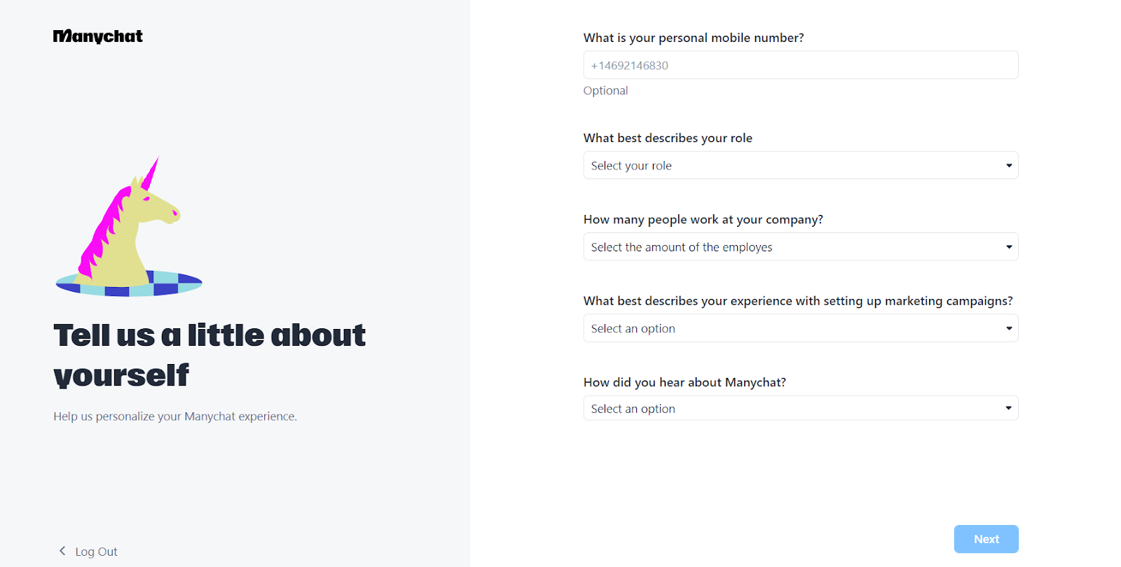 Durante il processo di registrazione, Manychat offre un’esperienza semplice che aiuta gli utenti a configurare il proprio chatbot. Il tempo necessario per iscriversi a Manychat dipende dalla familiarità dell’utente con processi di iscrizione di questo tipo. In generale, il processo di installazione può durare da pochi a diversi minuti.