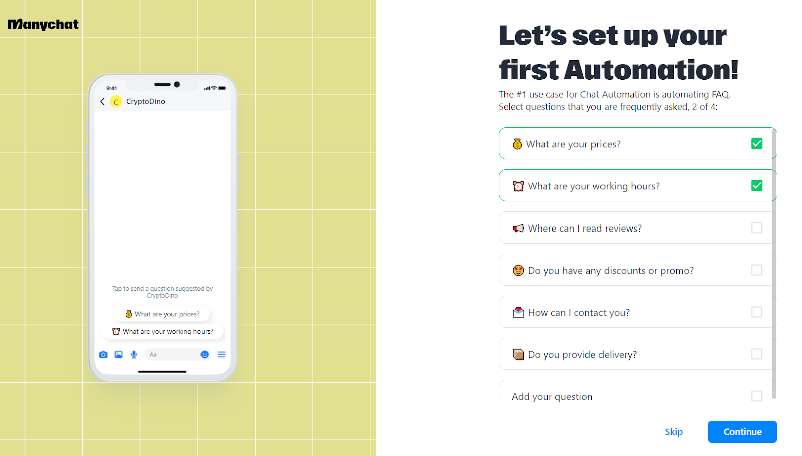 Come iniziare ad utilizzare la funzionalità bot di Manychat