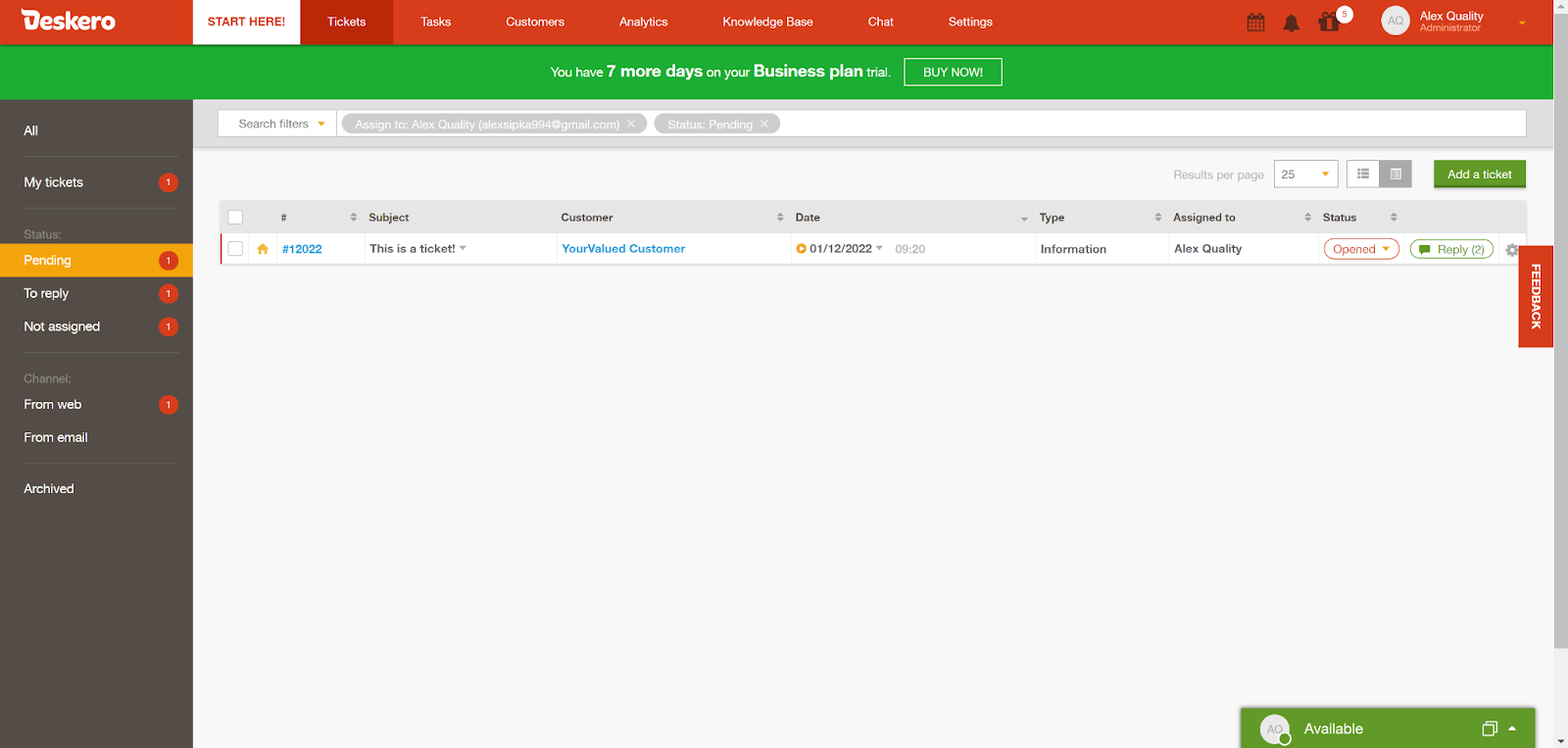 Deskero ha molto da offrire a un prezzo molto basso, tuttavia mancano alcune funzionalità essenziali e questo è un peccato. Nel complesso, si tratta di un software di help desk facile da usare e ben progettato, che sicuramente renderà felici molti clienti. Sebbene la base di conoscenze non sia esattamente inutile e lavorare con essa sia un piacere, non c’è molto spazio per la personalizzazione degli articoli. Il prezzo potrebbe essere compensato se si aggiungesse qualcosa in più alla base di conoscenza.