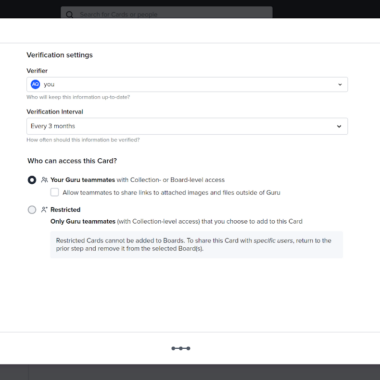 Questo problema, facilmente risolvibile, può verificarsi per vari motivi, come ad esempio problemi di connessione. Ricaricare l’immagine all’interno di una scheda Guru dovrebbe risolvere il problema. In caso contrario, verificare se l’immagine è ospitata da Guru. Spesso le persone che non hanno accesso alla visualizzazione di Guru non sono in grado di vedere un’immagine ospitata all’interno dell’applicazione. Prova a modificare i permessi o a ricaricare l’immagine. Se il problema persiste, contatta Guru per ottenere l’aiuto del suo team di assistenza.