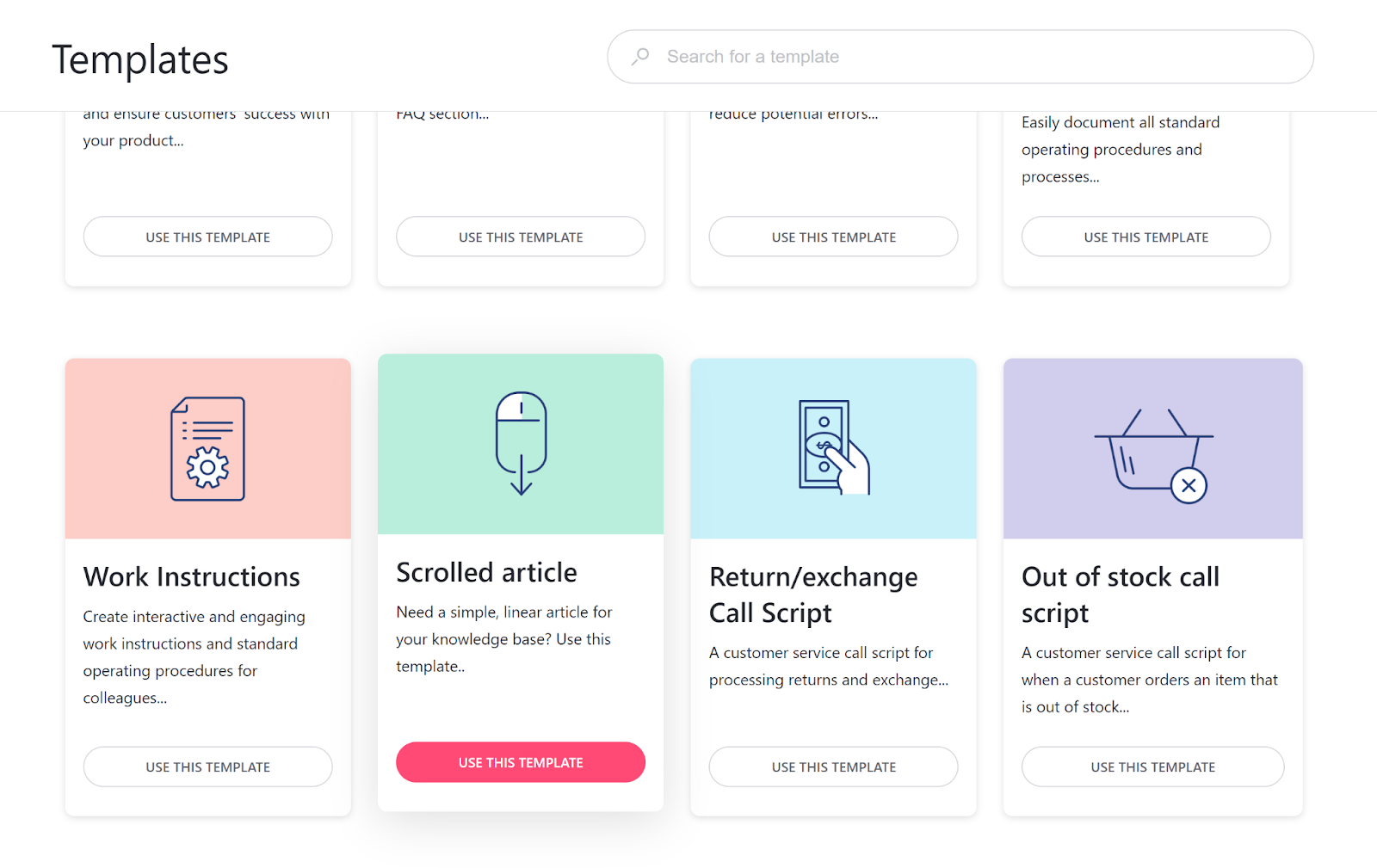 In Stonly non è possibile scegliere un modello vuoto. Tuttavia, grazie all’abbondanza di modelli offerti, è possibile trovarne uno adatto. La maggior parte dei modelli ha anche opzioni di personalizzazione che consentono di modificare la struttura dell’articolo.