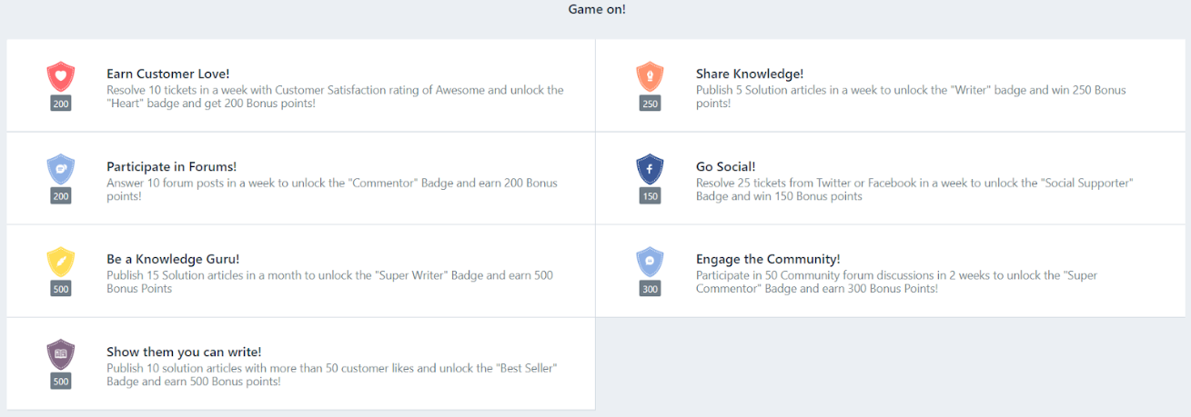 Quando il team di assistenza è pronto a lavorare, perché non aggiungere un po’ di divertimento all’intero processo di assistenza clienti? È qui che entrano in gioco le funzionalità di gamification di Freshdesk.