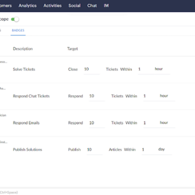 Una delle funzionalità principali della gamification di Zoho Desk è il sistema di badge. Gli agenti di supporto possono guadagnare badge in base alle loro prestazioni, come ad esempio “Mago della Mail”, ” Customer Delight” e “Ticket Terminator”. Questi badge vengono visualizzati sul profilo dell’agente e rappresentano un riconoscimento per i risultati ottenuti. Zoho consente anche di aggiungere badge personalizzati.