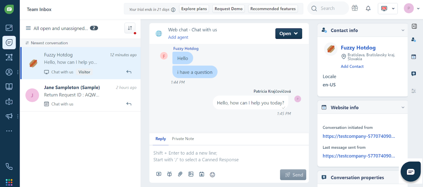 La versione gratuita non costa nulla e può essere utilizzata da un massimo di 100 agenti. Offre una quantità limitata di funzionalità, tuttavia può essere una buona opzione per le piccole aziende che non hanno bisogno di molte funzionalità avanzate. Alcune delle funzionalità incluse nell’abbonamento gratuito sono il chatbot, l’analisi del chatbot, le visualizzazioni della posta in arrivo, i gruppi, i marchi di conversazione, le e-mail, le azioni di massa e molto altro ancora.