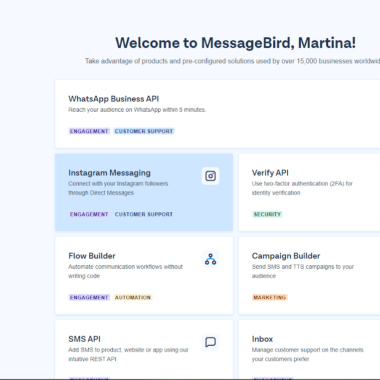 L’iscrizione alla versione di prova di MessageBird è abbastanza semplice. Dopo aver fornito i tuoi dati e aver aggiunto il numero dei tuoi agenti, ti troverai di fronte a un dashboard dall’aspetto semplice, che non sembra eccessivo per un utente che lo vede per la prima volta.