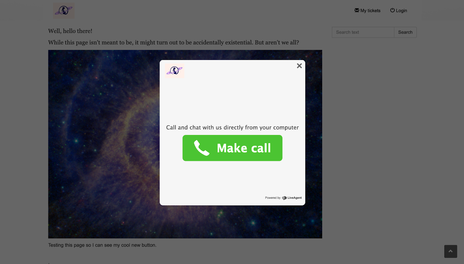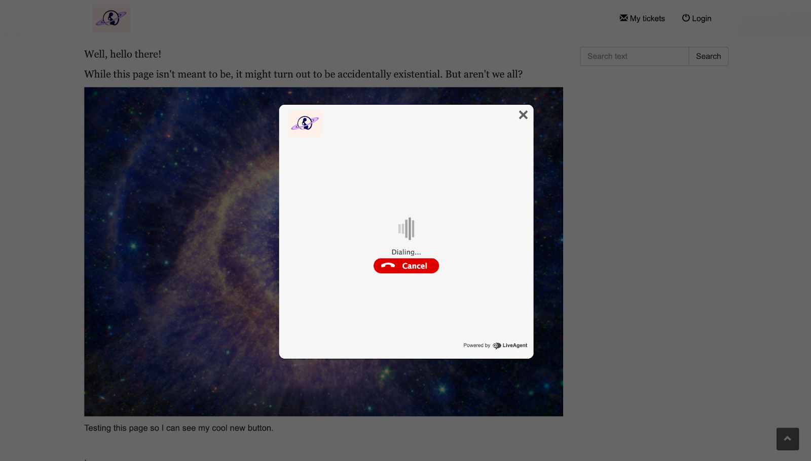 È il momento di testare! Avevo due schede aperte: la prima era la mia dashboard di agente cliente e la seconda la mia base di conoscenza con il pulsante “Chiamaci”. Tutto è in ordine, quindi ho deciso di fare entrambe le operazioni con lo stesso browser per vedere se ci fossero problemi o meno.