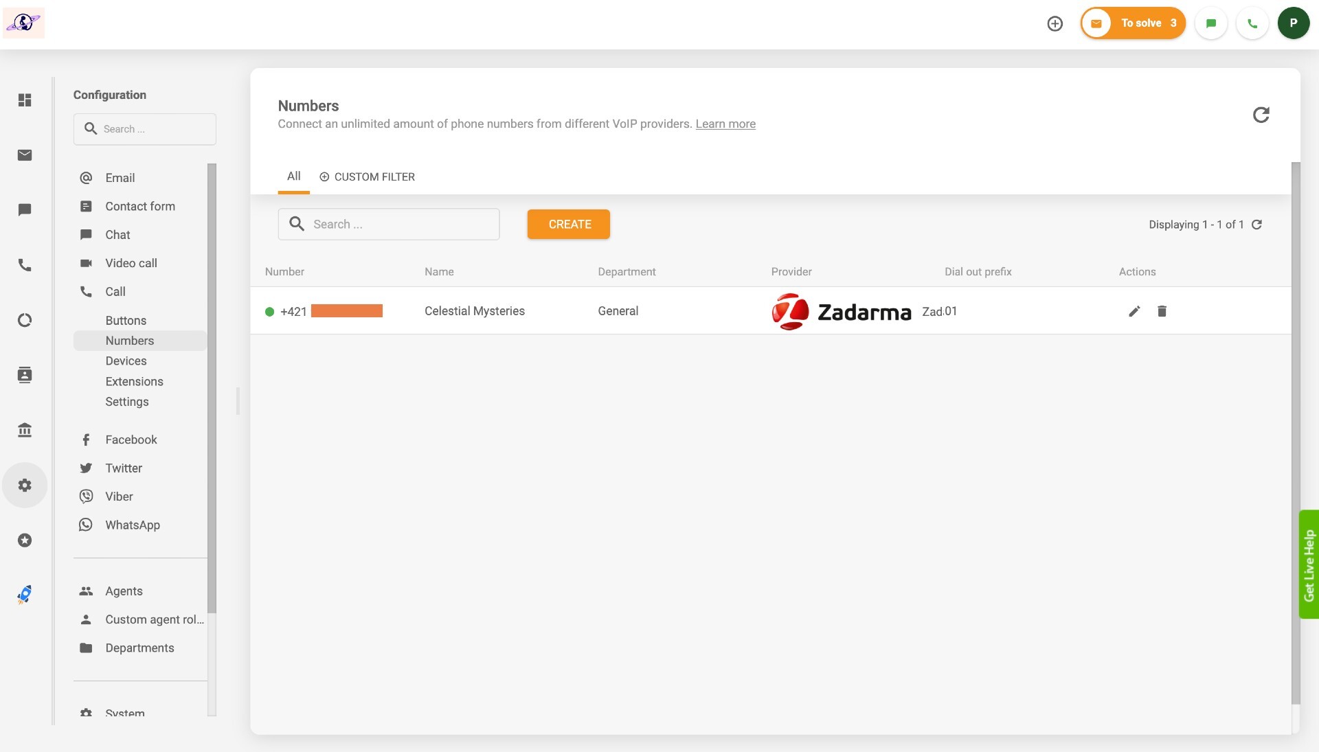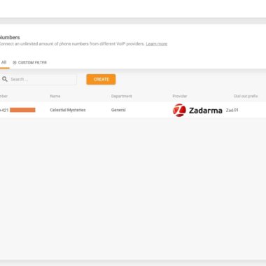 Naturalmente, sono andato su Chiamate > Numeri, ho fatto clic sul pulsante arancione “Crea” e ho aggiunto un numero del servizio VoiP di Zadarma. Esistono molti fornitori di servizi di numeri telefonici, quindi puoi cercare quello che utilizzi o semplicemente inserire un numero di telefono VoIP generico se non vedi il tuo fornitore VoIP nell’elenco. Una volta inserite le informazioni appropriate, ho fatto clic su “Aggiungi” in basso e il mio numero connesso è apparso con un punto verde accanto. Mi è sembrato un semaforo verde, quindi credo che sia andato tutto bene!