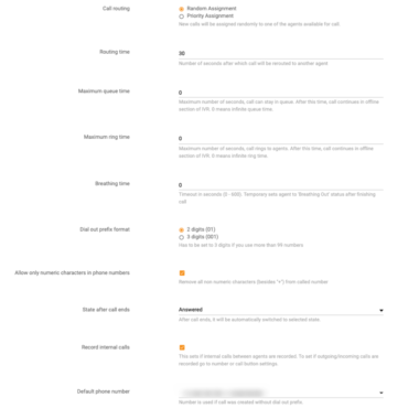 In seguito, esaminando le opzioni delle configurazioni delle chiamate, ho trovato altre funzionalità che non mi aspettavo di poter modificare per il mio call center. La prima che mi è saltata all’occhio è stata ” Breathing time” (tempo di respirazione), in quanto non è un elemento che avevo collegato a nessuna impostazione prima d’ora. Ho letto la piccola descrizione sottostante e ho visto che mi permette di impostare l’intervallo di tempo tra una chiamata e l’altra che un agente può avere, una sorta di periodo di riposo. È sorprendente. Onestamente, non ho dubbi che chiunque lavori in un call center apprezzerebbe questa funzionalità specifica. La possibilità di avere una piccola pausa dopo le chiamate è preziosa, soprattutto per riflettere e magari bere un po’ d’acqua. Complimenti a LiveAgent per aver dato alle aziende la possibilità di adottare pratiche di lavoro più consapevoli.
