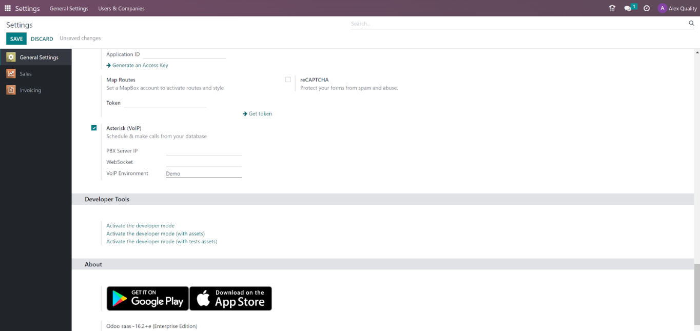 Odoo rende abbastanza facile per chiunque accedere alla funzionalità di chiamata, perché la funzione è disponibile nell’angolo in alto a destra, indipendentemente dalla posizione all’interno dell’interfaccia utente. Le impostazioni per il componente aggiuntivo VoIP sono disponibili nelle impostazioni generali e alcune di esse si trovano nelle preferenze dell’utente. Queste opzioni sono abbastanza facili da trovare, poiché l’interfaccia è progettata piuttosto bene. Il design non è dei più moderni, ma è comunque funzionale.