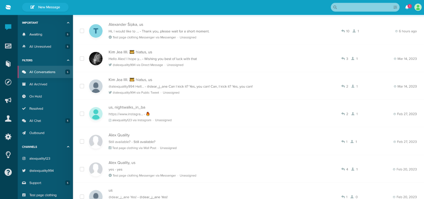 L’organizzazione dei ticket in Re:amaze è ottima e molto profonda. È possibile classificare i biglietti non solo in base ai canali, ma ogni canale ha le proprie sottocategorie per facilitare l’organizzazione. In questo modo puoi ordinare facilmente i ticket per i social media e vedere solo quelli che desideri. Le sottocategorie dell’organizzazione dei ticket includono in attesa, iscritti, non risolti, non assegnati, risolti, archiviati, partecipanti e molto altro ancora.