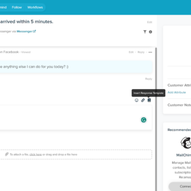 L’esperienza di risposta è molto piacevole. Posso fare clic per aggiungere file e allegati o trascinarli direttamente nel messaggio. Ho anche la possibilità di inserire modelli di risposta, emoji e scegliere un cambiamento di stato da applicare quando rispondo a un messaggio. Non è la serie di funzionalità più ricca che abbia mai visto in un sistema di ticketing per il servizio clienti sui social media, ma fornisce quasi tutto ciò che può servire per comunicare in modo efficace.