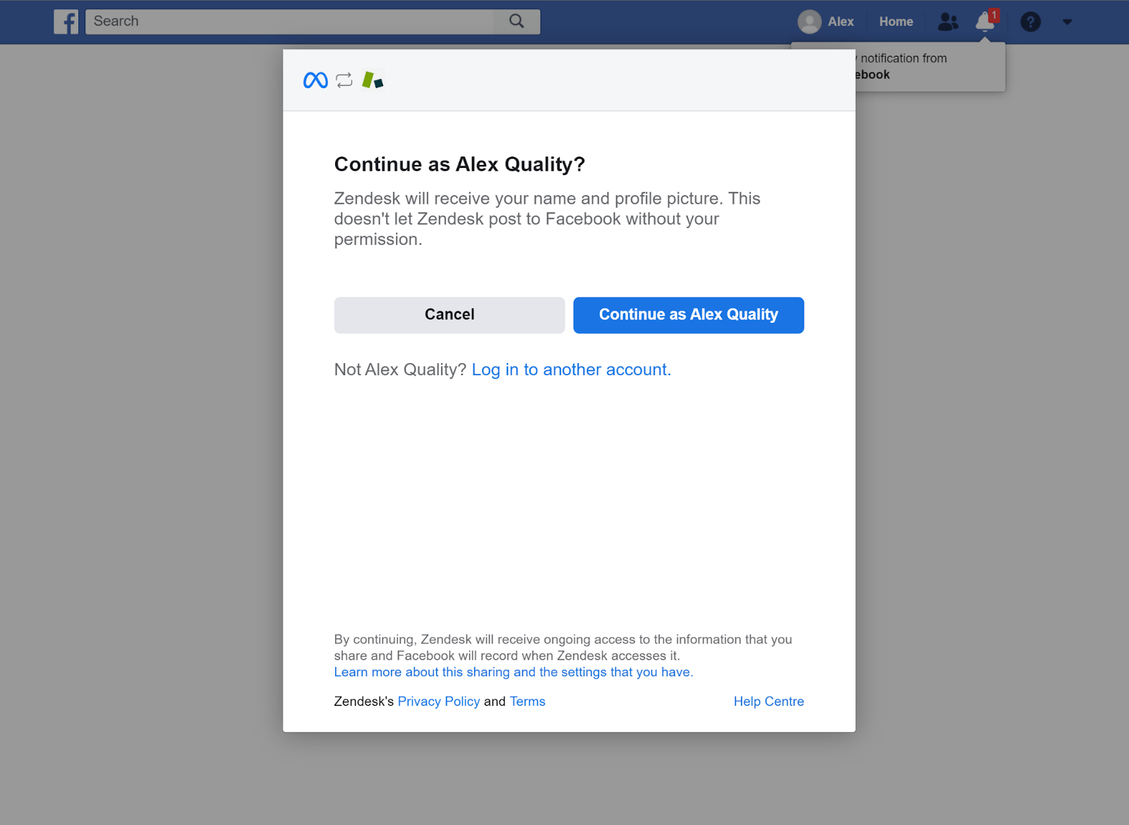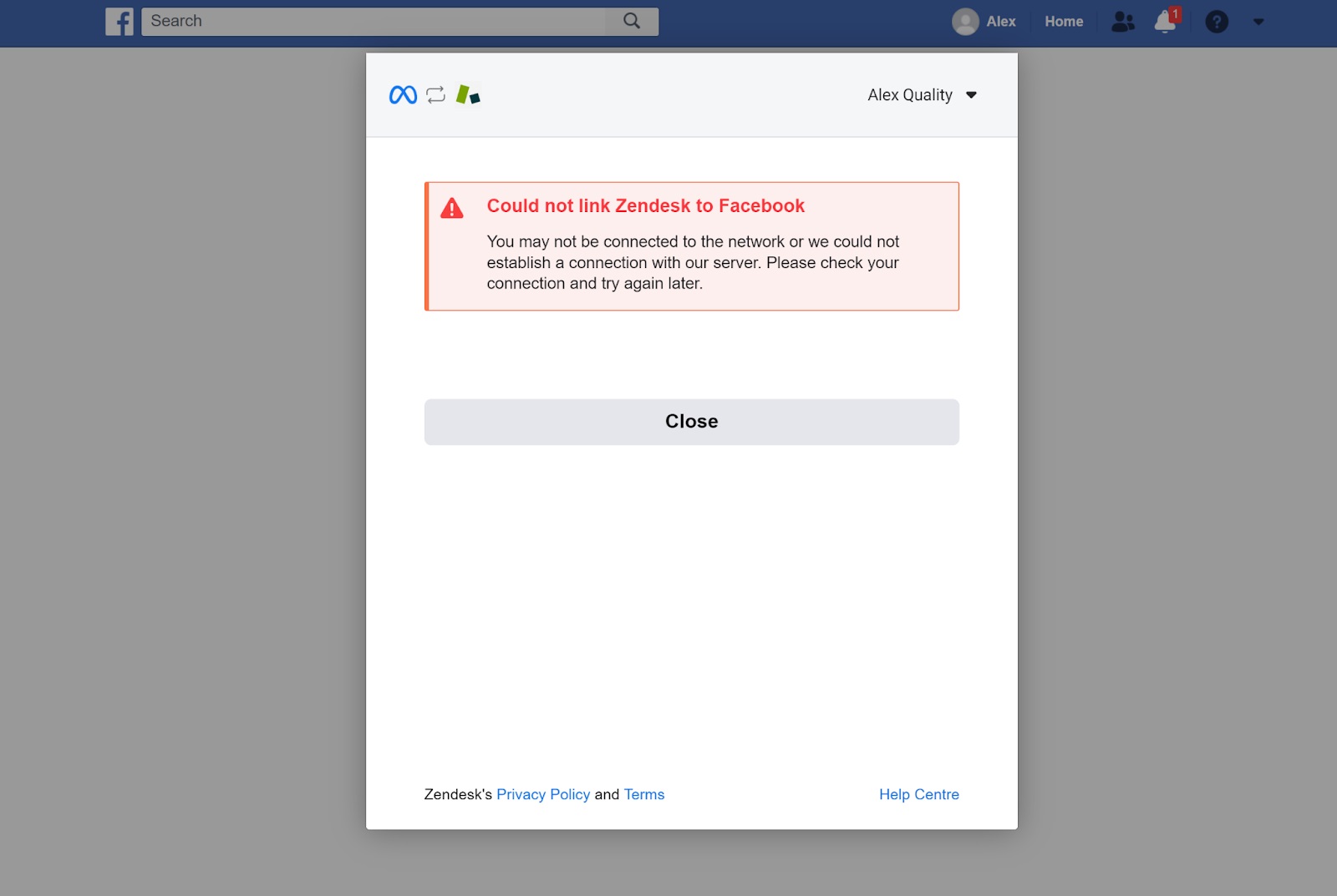 Se ricevi un messaggio di errore mentre cerchi di integrare il tuo account Facebook con Zendesk, prova a cancellare la cache o a uscire dal browser per 15 e più minuti. Torna all’applicazione Zendesk dopo il tempo trascorso e prova a integrare nuovamente l’account Facebook. Se l’integrazione continua ad avere problemi, molto probabilmente sarà necessario contattare l’assistenza Zendesk.