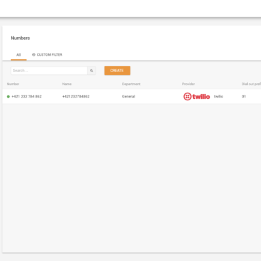 Dopo aver dato un’occhiata in giro, ero pronto a testare le capacità di registrazione delle chiamate di LiveAgent. Naturalmente, non è possibile registrare le chiamate se non si dispone di un numero VoIP e di un trunking SIP. Non c’è da preoccuparsi, LiveAgent offre una pletora di integrazioni per questo, quindi non importa quale sia il vostro provider VoIP, ci sono buone probabilità che LiveAgent lo copra. Per verificare quali sono le integrazioni possibili, accedere al pannello sinistro dell’agente, fare clic su Impostazioni > Chiamate > Numeri, quindi premere il pulsante arancione Crea.