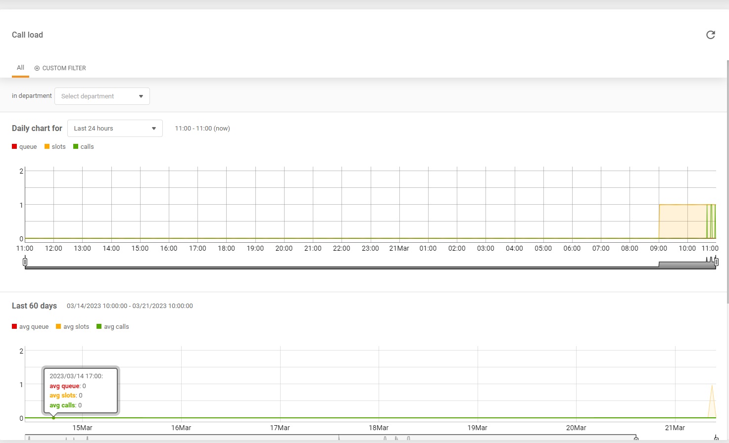 Oltre alle registrazioni delle chiamate, LiveAgent offre anche una cronologia completa delle chiamate e un report sul carico delle chiamate, in modo da poter tenere sotto controllo tutte le operazioni del call center.