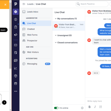 Pipedrive è un noto software di gestione delle relazioni con i clienti che può essere utilizzato anche come software di live chat. Offre una serie di funzionalità affidabili e utili che possono coprire tutte le esigenze del CRM. In questa recensione, tuttavia, daremo un’occhiata alla live chat e alle sue funzionalità, per scoprire come funzionano e quanto sono facili da usare. Iniziamo.
