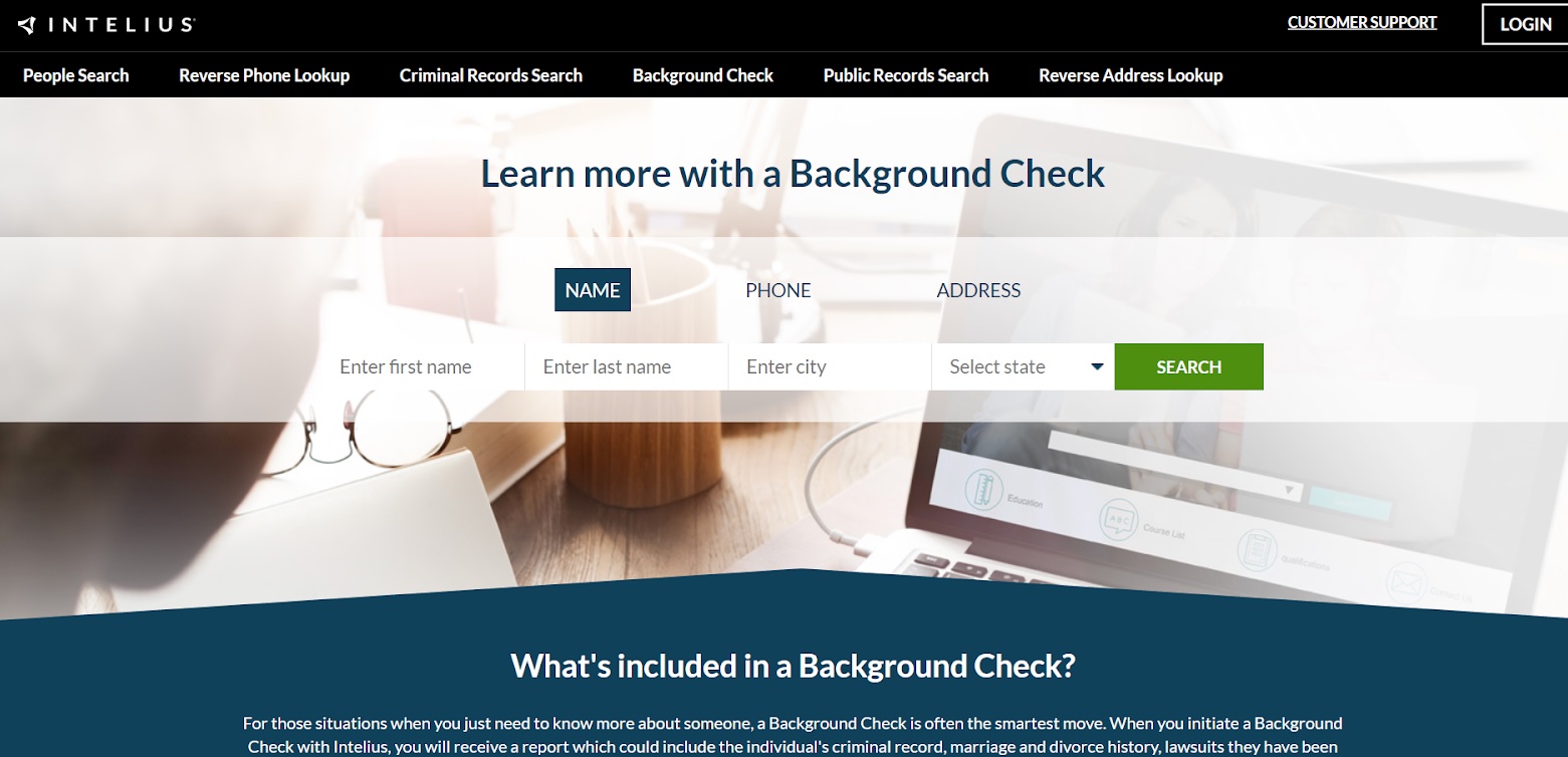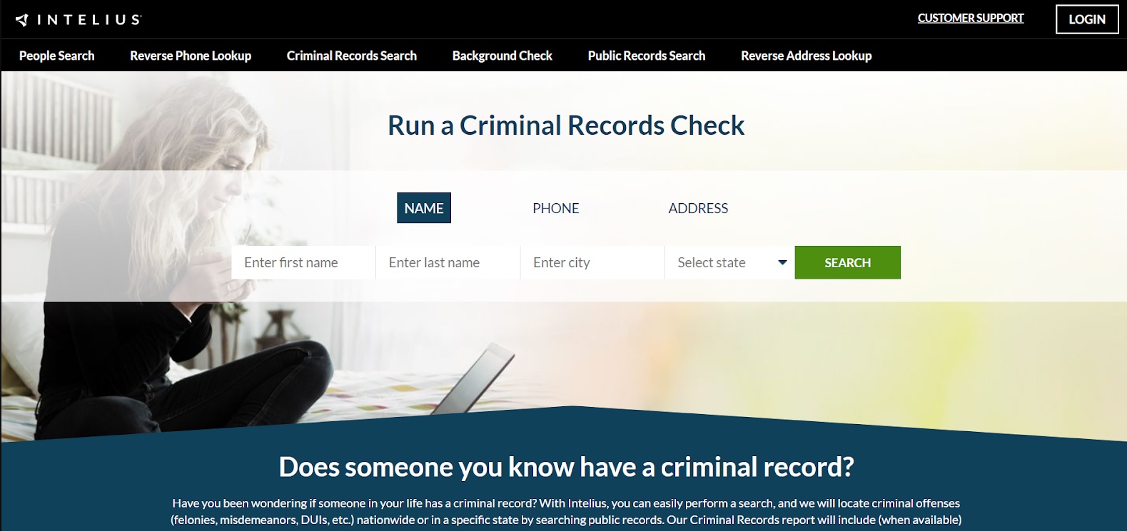 Fin da subito puoi notare che è possibile effettuare ricerche in base al nome, al numero di telefono e all’indirizzo. Intelius offre anche delle informazioni aggiuntive, come casellari giudiziari, controlli dei precedenti e registri pubblici. Tutte queste opzioni sono visibili nella parte superiore della pagina.