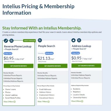 In conclusione, Intelius è un noto fornitore di reverse phone lookup. I prezzi sono chiari e facili da trovare sul sito web. Tuttavia, rispetto alla concorrenza, i prezzi sono piuttosto alti per il numero di servizi e informazioni che si possono ottenere.