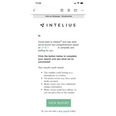 Intelius consente di rimuovere le proprie informazioni dal proprio database. Intelius condivide informazioni come l’indirizzo e-mail dell’utente con i propri partner e affiliati per scopi di marketing. Pertanto, se vuoi escludere i tuoi dati personali da questo processo, puoi farlo compilando un modulo sul loro sito web.
