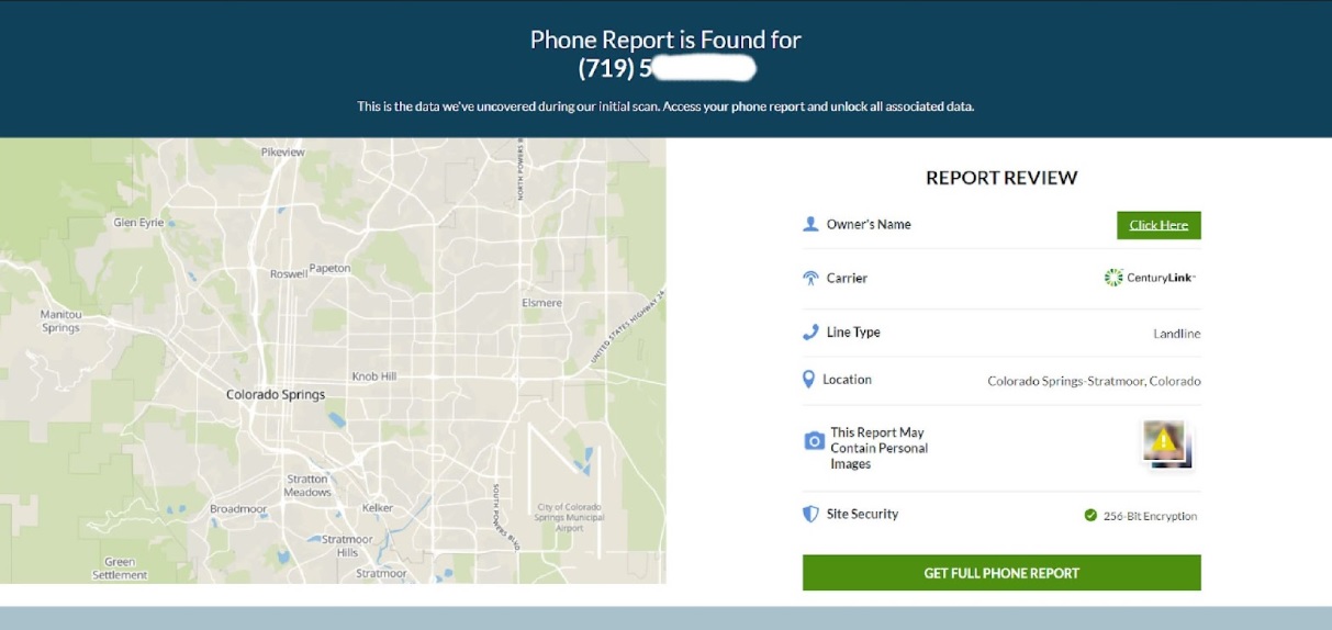 Dato che Intelius non è disponibile gratuitamente, i risultati ti mostreranno solo l’operatore di telecomunicazioni, la posizione approssimativa e se il numero di telefono è un numero di cellulare o di rete fissa. Tutte le altre informazioni sono nascoste dietro un paywall.