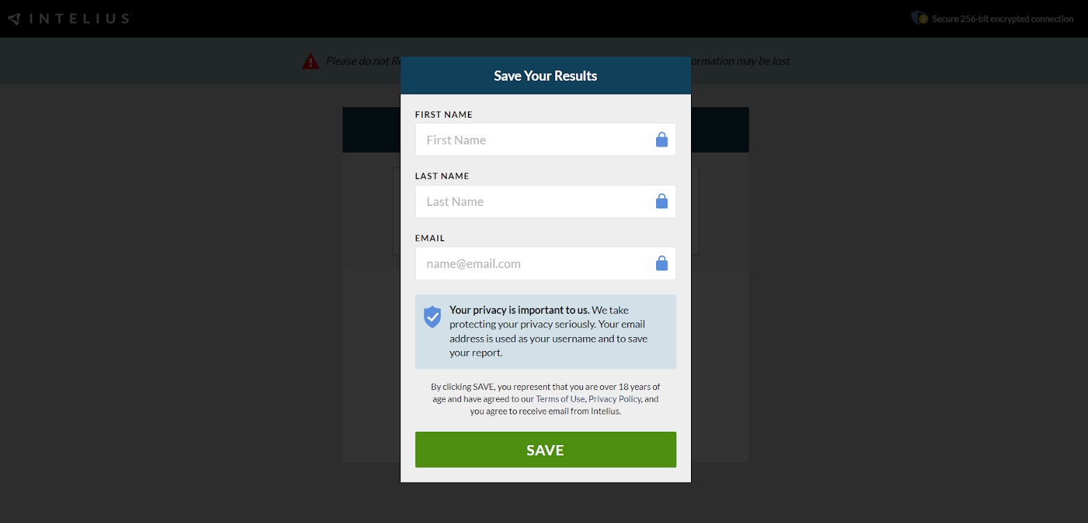 Dopo che i risultati sono pronti, devi inserire il tuo nome completo e l’indirizzo e-mail per continuare. Riceverai un’e-mail informativa sulla tua ricerca e sui risultati.