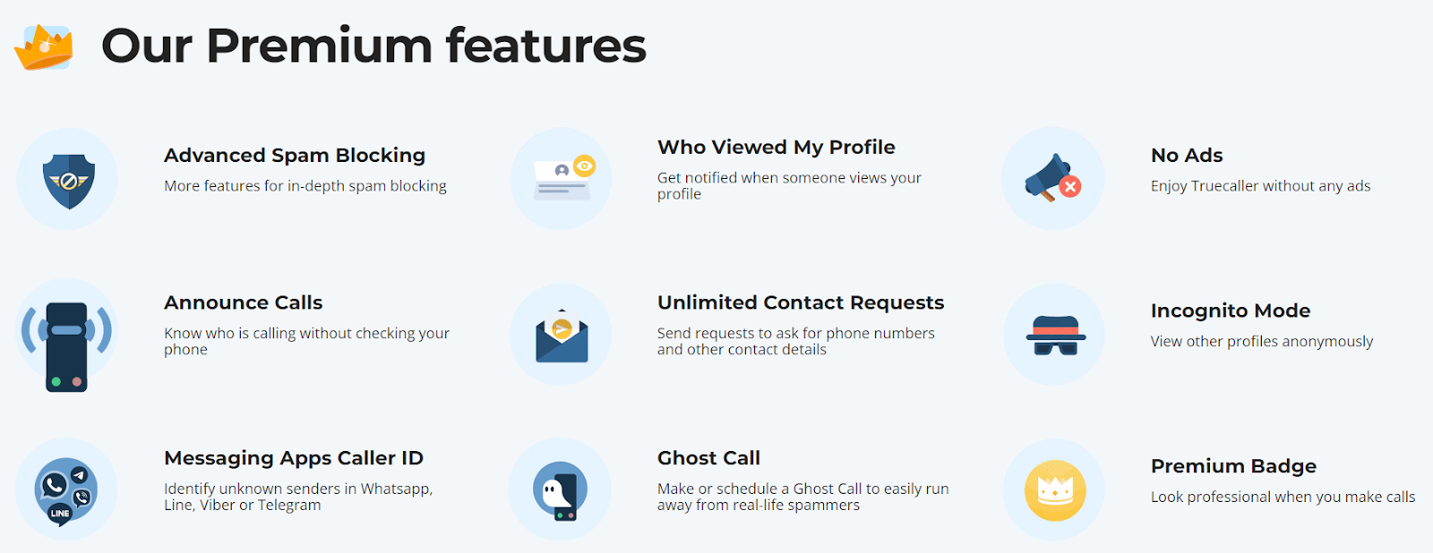 Truecaller offre un’ampia gamma di funzionalità avanzate come le chiamate in Incognito, le chiamate Fantasma, l’ID Caller delle App di Messaggistica, l’Annuncio di chiamate e molto altro ancora. Tuttavia, non tutte sono disponibili nella versione gratuita.