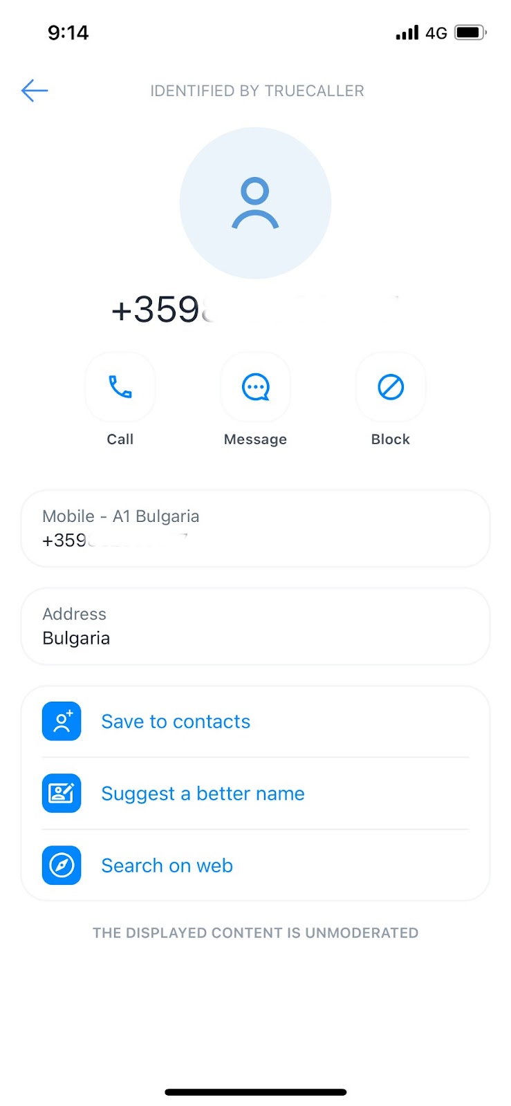 Le informazioni sul numero sconosciuto possono essere molto limitate. Può indicare solo il paese da cui il numero chiama, l’ora locale del paese e l’operatore di telecomunicazioni. Le limitazioni possono variare a seconda del paese di origine del numero di telefono e della quantità di dati pubblici che sono in grado di raccogliere da quel particolare paese.