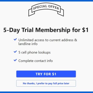 Whitepages offre anche un’iscrizione di prova di 5 giorni al costo di $1, che consente di accedere illimitatamente a informazioni come l’indirizzo attuale e le informazioni sul numero di telefono fisso. L’iscrizione di prova non include funzionalità aggiuntive. Include solo 5 ricerche inverse di telefoni cellulari, il che non ti dà molto spazio per testare i loro servizi.