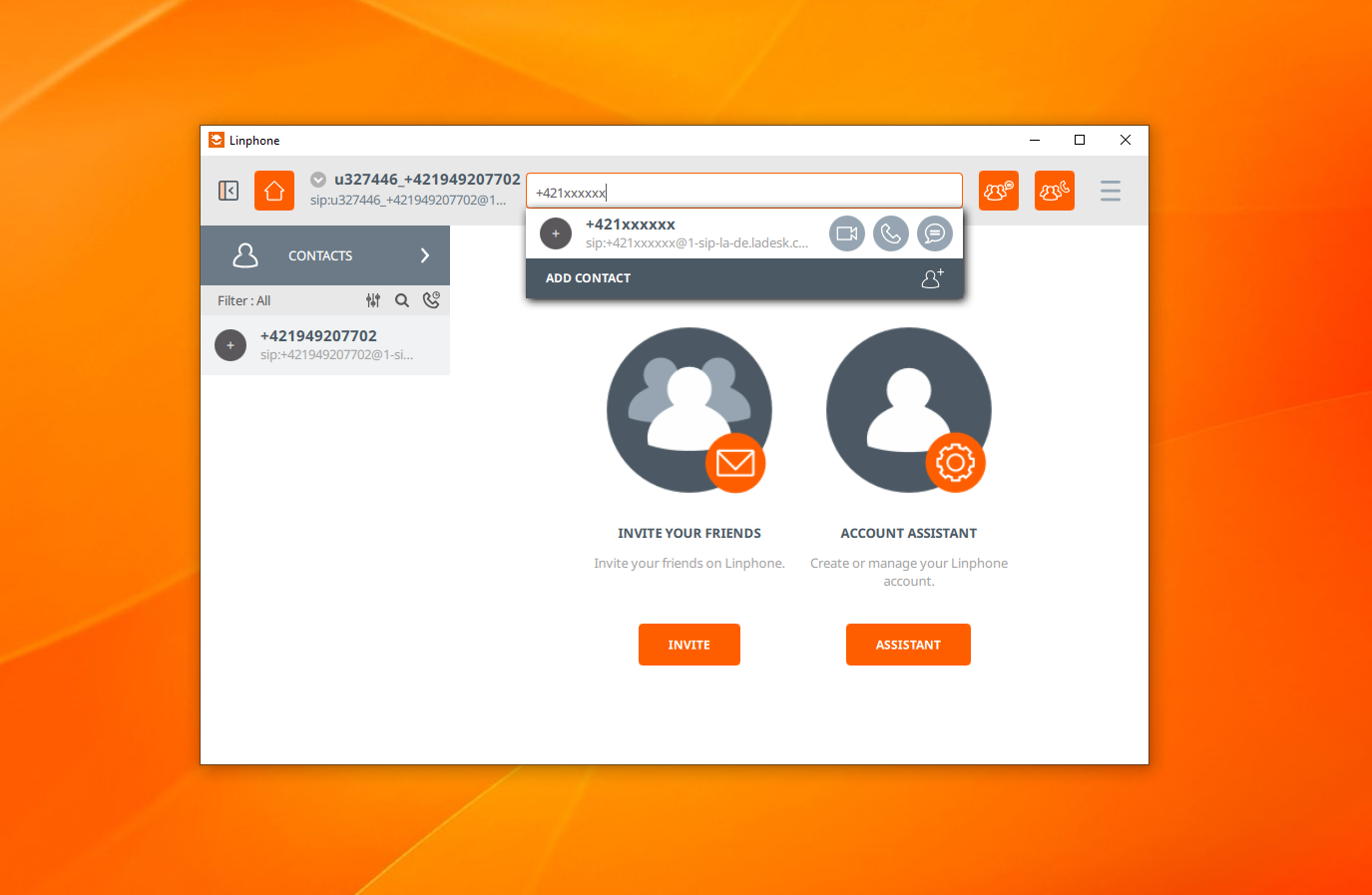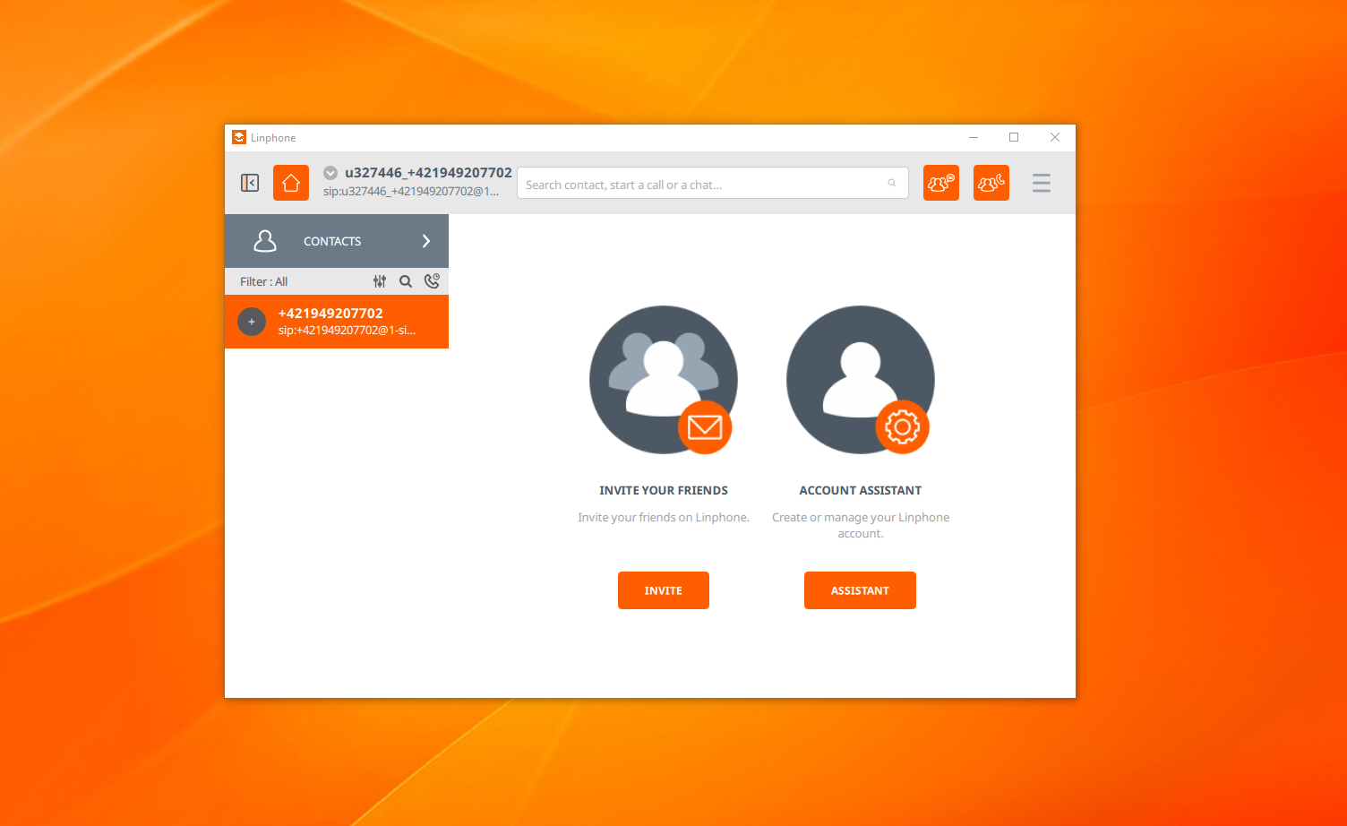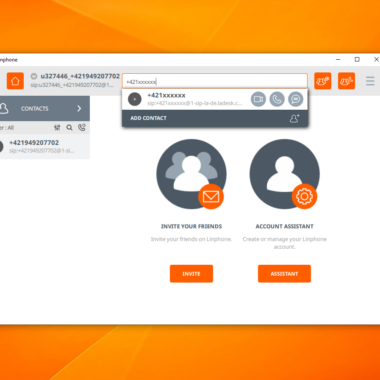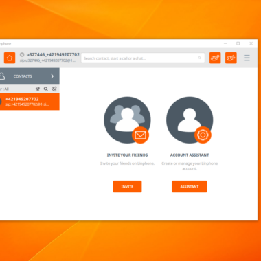 L’interfaccia utente di Linphone appare confusa per un’applicazione così semplice. Ci vuole un po’ di tempo per abituarsi, ma una volta che ci si è abituati non si dovrebbero incontrare difficoltà. Alcuni menu e opzioni non hanno senso all’inizio. Per fare un esempio, l’applicazione non ha un tastierino di composizione, cosa insolita per un softphone. La schermata iniziale dell’applicazione sembra invece essere la guida alla configurazione con la possibilità di invitare amici e un assistente per l’account.