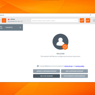 Essendo un softphone open source, Linphone può essere semplicemente scaricato dal sito web ufficiale e installato sul computer in pochi secondi. Il processo di installazione è standard. Una volta avviata l’applicazione, Linphone mi ha accolto con un contratto d’uso e una Guida Introduttiva con diverse opzioni. Puoi creare o accedere al tuo account Linphone, collegare un account SIP o eseguire una configurazione remota.
