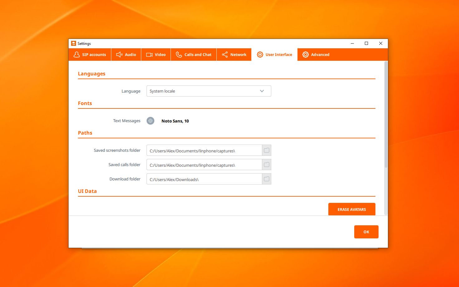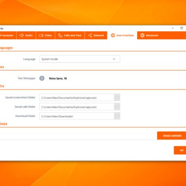 Le impostazioni dell’applicazione offrono una serie impressionante di opzioni con cui gli utenti possono regolare l’applicazione in base alle proprie preferenze. Oltre alle opzioni audio standard, come la selezione del dispositivo di riproduzione e del dispositivo di acquisizione, è possibile modificare i codec audio. Lo stesso vale per i video e i codec video. Le chiamate e le chat hanno una propria serie di opzioni: risposta automatica, registrazione automatica delle chiamate, opzioni di notifica e molto altro ancora. L’applicazione consente anche di passare a una lingua diversa e di scegliere un carattere per i messaggi di testo.