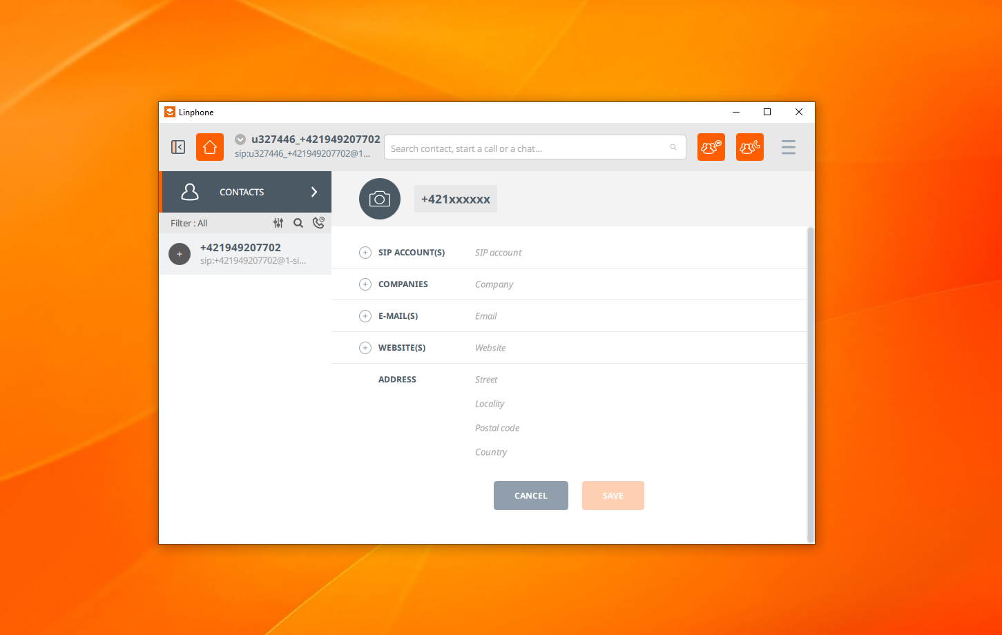 Il design dell’applicazione è moderno, il che mi ha sorpreso dato che Linphone è un softphone open source gratuito. La maggior parte dei softphone gratuiti tende ad avere delle interfacce blande e obsolete, ma non è stato questo il caso. I pulsanti importanti sono evidenziati con un colore arancione che cattura l’attenzione e aiuta a navigare. Questo è particolarmente utile perché la navigazione stessa può sembrare insolita all’inizio.
