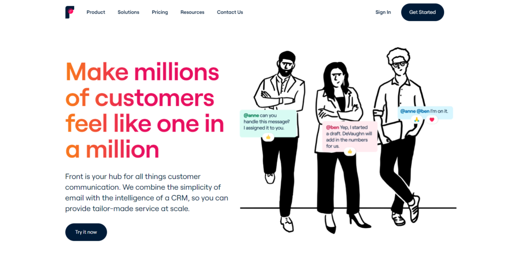 Front è un sistema di gestione dei reclami che aiuta le aziende a tenere traccia dei reclami dei loro clienti. Front utilizza gli strumenti di analytics per trovare aree problematiche comuni e rendere facile per i clienti richiedere aiuto per problemi specifici.