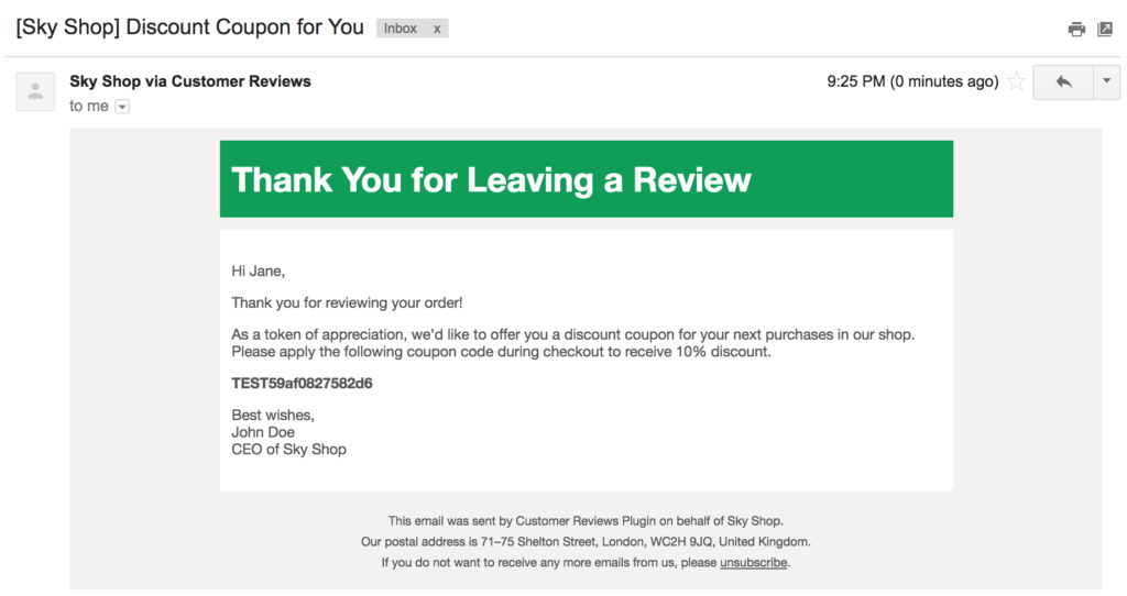 I modelli di e-mail di sconto mirano ad attirare l’attenzione e convincere un destinatario a intraprendere una determinata azione. Ecco perché l’invio di un’email ben progettata e visivamente accattivante probabilmente otterrà risultati migliori rispetto a un messaggio di testo normale. Se utilizzi “email di sconto” su Google troverai molti esempi, tutti colorati e appariscenti con grandi riduzioni. È meglio seguire questo percorso.